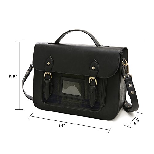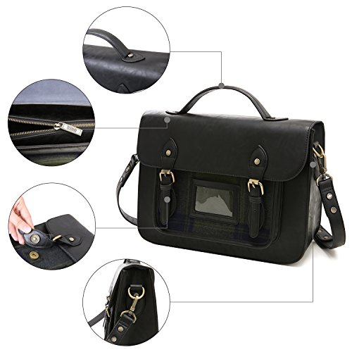-. Feature : DIMENSIONS: 14(L) x 4.3(W) x 9.8(H) inch. Weight: 2.6 LB. / PREMIUM MATERIAL: This laptop bag is made of superior PU leather and double secured by magnetic snaps and zippers for long-lasting durability. / STRUCTURE: 1 main compartment for ipad, notebook, wallet, books and etc, 1 inner padded compartment for 13 inch laptop or a tablet with a Velcro strap closure, 2 inner slip pockets & 2 pen slots, 1 outside front pocket for cellphone, passport or tissue for quick access. / ADJUSTABLE & DETACHABLE SHOULDER STRAP: You can effortlessly adjusted to preferred lengths and allow you to carry as a laptop briefcase, messenger bag or shoulder bag. / VINTAGE STYLE: This women briefcase is ideal for work, business trip, school, college, travel, commuting, overnight or everyday use. Perfect gift choice.