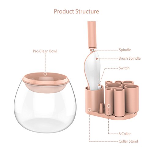 Electric Makeup Brush Cleaner Machine, Breett Auto Makeup Brush Cleaner and Dryer for All Kinds of Cosmetic Brush - Pink