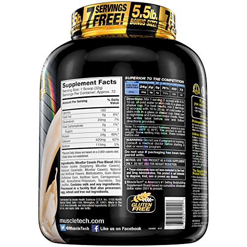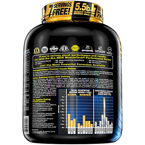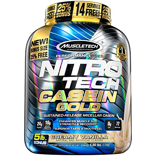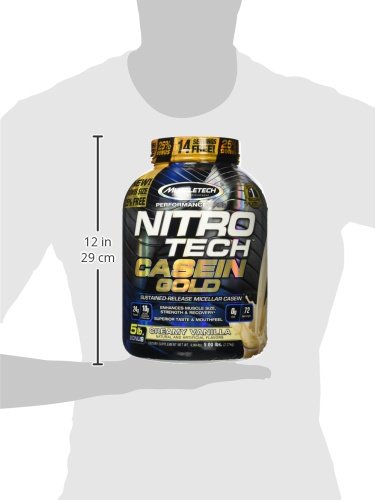 ReleaseDate : 2017-06-10 Studio : MuscleTech Publisher : MuscleTech Binding : Health and Beauty Product Description Nitro Tech has led the way in whey protein innovation. And now new Nitro Tech Casein Gold is here! This advanced protein powder features multiple premium casein protein sources for optimal digestion rate and superior BCAAs profile! Casein protein and milk protein are some of the slowest-digesting proteins available - much slower than whey protein and whey protein isolate. Nitro Tech Casein Gold delivers 24 grams of high-quality casein protein taken from multiple premium casein sources for a prolonged amino acid release to feed your muscles for up to 8 hours. What's more, each enhanced serving of Nitro Tech Casein Gold contains 10 grams of naturally occurring BCAAs, L-glutamine and precursor, and only 1 gram of sugar. Directions: Ideal use is nighttime and between major meals. Mix 1 serving (1 scoop) with 8 to 10 oz. of cold water or skim milk in a glass or shaker cup. For best results, mix 2 servings (2 scoops) with 16 to 20 oz. of cold water or skim milk in a glass or shaker cup. Read the entire label before use and follow directions provided. 0