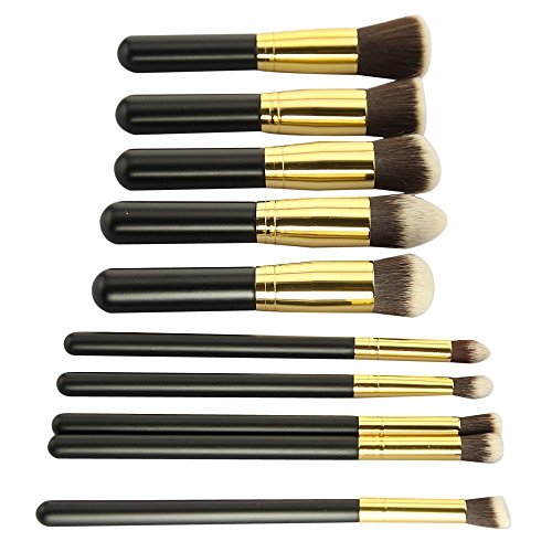 Angélique beauté® Premium Synthetic Cosmetic Kabuki Makeup Brush Set Kit - Foundation / Blending / Blush / Eyeliner / Face / Powder / - 10 Pcs -...