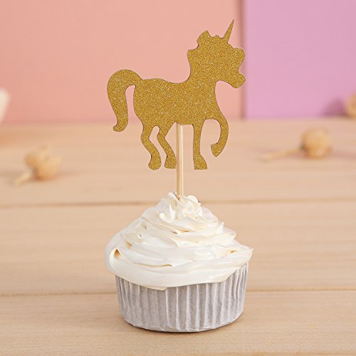 24 Pack Golden Unicorn Cupcake Toppers Kids' Party Decors - by Giuffi