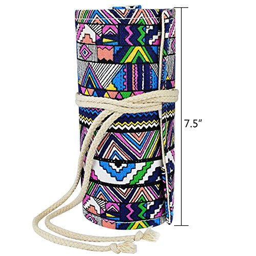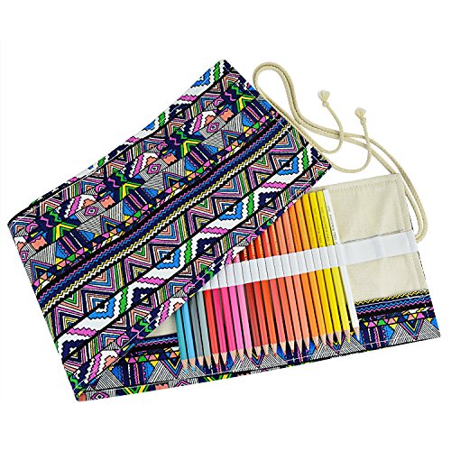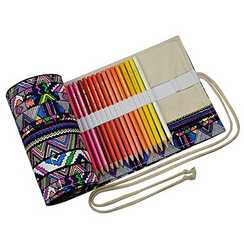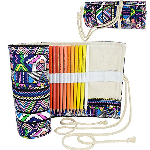 Wrapped Pencil Case - Pistha Canvas Colorful Pencil Wrap Pencil Pouch Pencil Holder with 72 Slots for Holding up to 74 Pencils or Gel Pens and 3 Large Slots for Holding Eraser, Sharpens