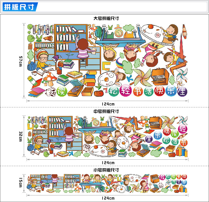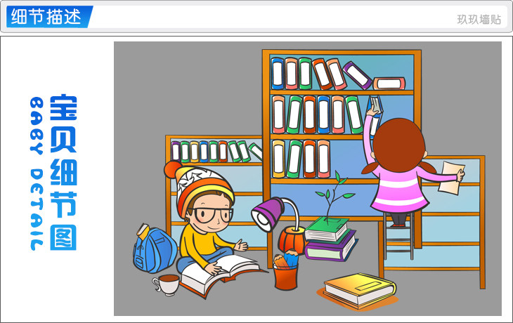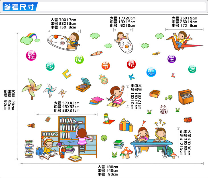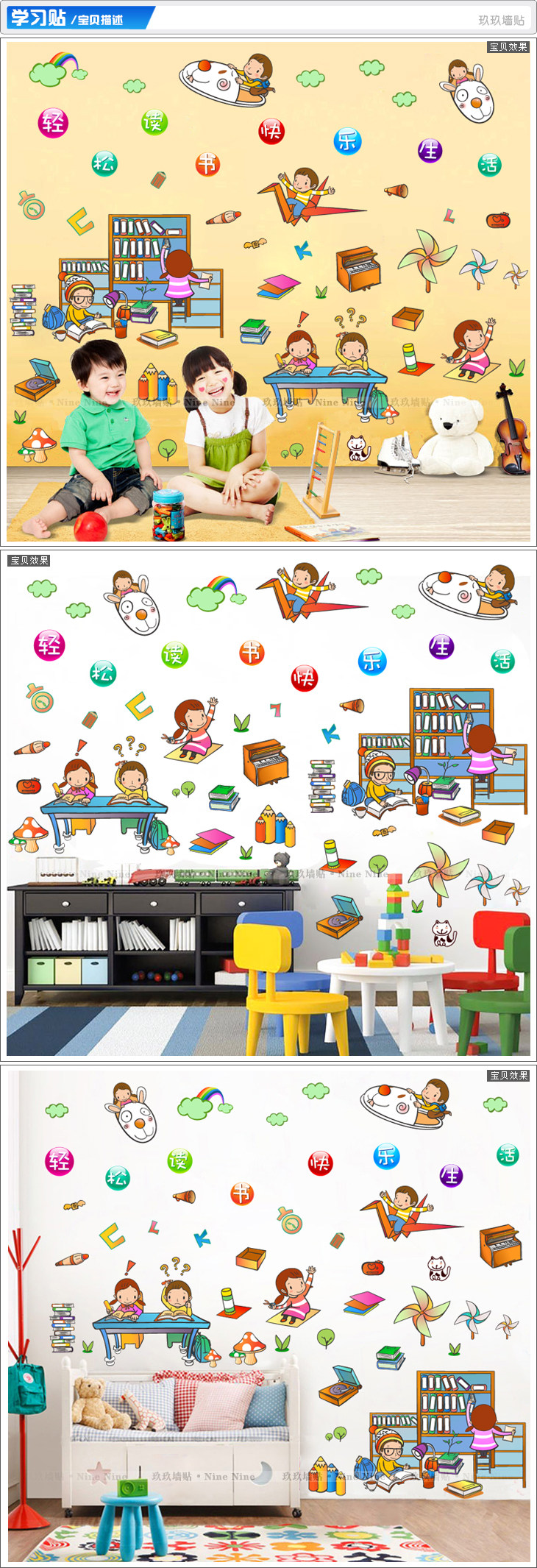 幼儿园图书角可爱学习读书贴纸快乐生活大风车卡通飞机书架墙贴画