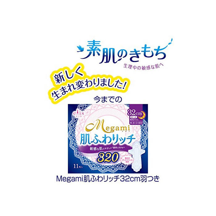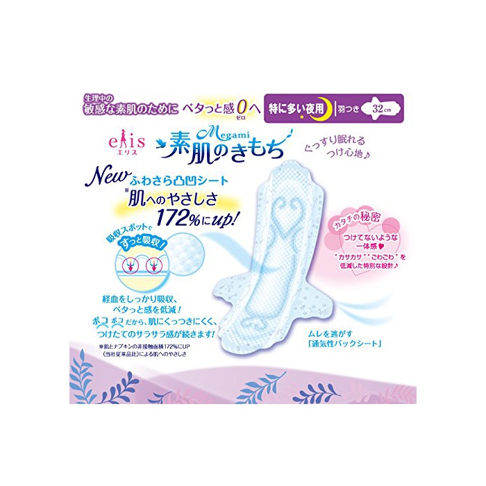 원본상품명: エリス Megami 素肌のきもち スリム 羽つき 32cm (特に多い夜) 11枚
