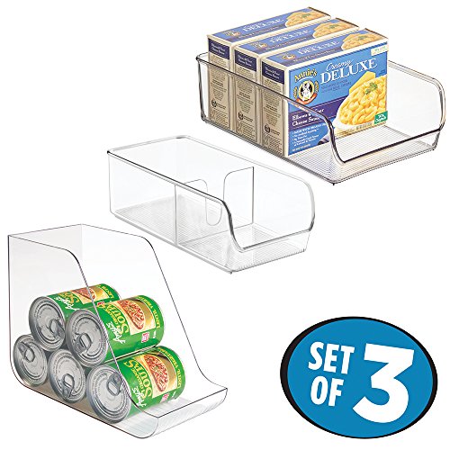 mDesign Canned Food/Soda Organizer, Spice Packet Bin, Storage Bin for Pantry, Refrigerator, Freezer - Set of 3, Clear