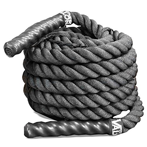 Valor Fitness BRB-WO Black Conditioning Rope- 1.5" x 40' without protective sheath. Constructed of a rigid, black nylon with ends capped in durable composite coating to prevent fraying. 40' in length by 1.5" diameter. Originally developed for specific combat sports such as football and Mixed Martial Arts, heavy rope training is now finding its way into the mainstream. If you're looking for a highly effective, back-to-basics type of conditioning that brings a new twist to your fitness routine, this is it. Along with increasing your strength, power, and endurance, the constant motion of rope battling will floor you with a muscle toning, metabolic workout unlike any other. You'll be shocked at how fast a few quick whips can get you to your maximum heart rate.
