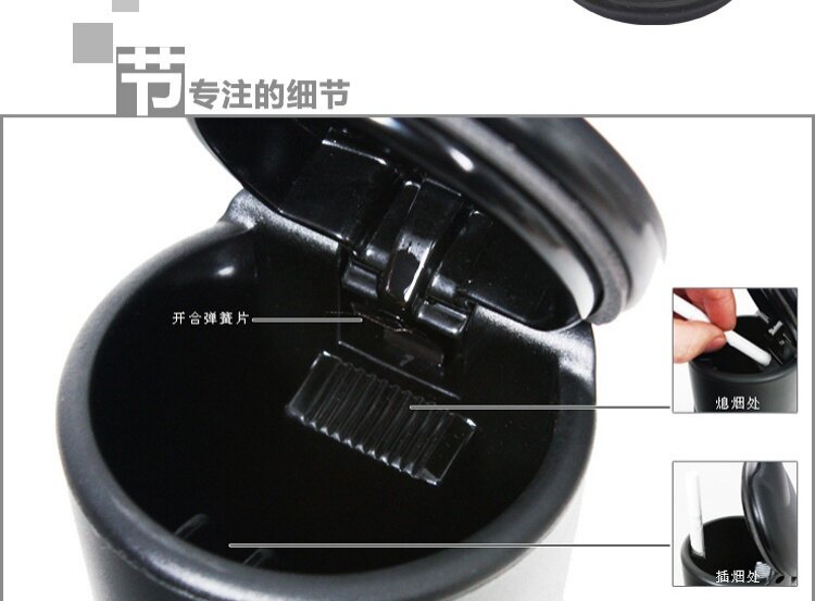 A must item for every vehicle Great design for putting the lighted cigarettes into this ashtray while you are driving It is made of high impact plastic for durability Just place on the air vent with its clip holder at the back side Absorb smoke by Activated charcoal filter, effectively reduce the harm of secondhand smoke on others by Super suction Inner LED for easier and safer night time ashing When you open the case up to 90 degree, the light turned on Cylinder design, easy to open the lid The color of the accessories is different per unit of production What's Included in the Package: 1 x Portable Car Auto LED Light Cigarette Smokeless Cylinder Ashtray Holder