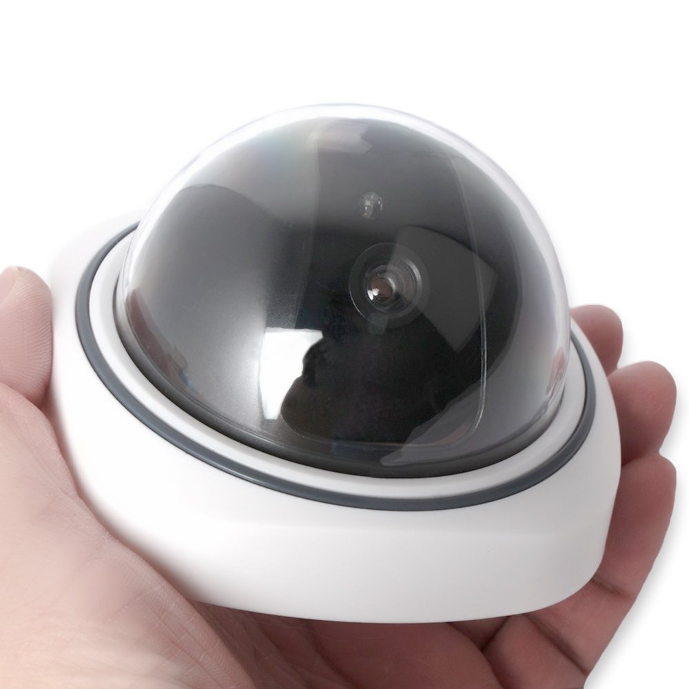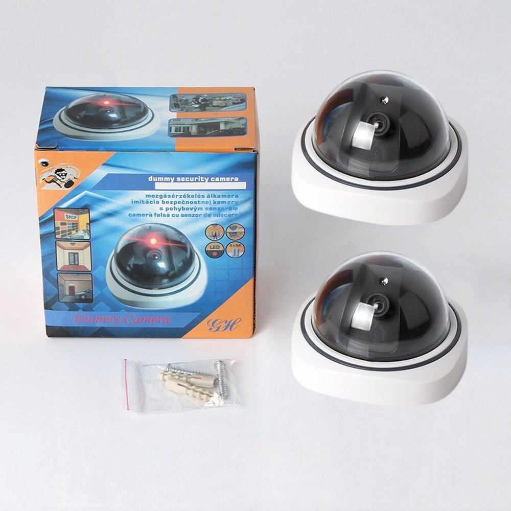 When two batteries are inserted, the led light on the front of the dummy camera turns red and flashes all the time.