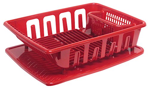 United Solutions SK0124 2-Piece Sink Set Dish Drainer and Drainboard, Red, Large