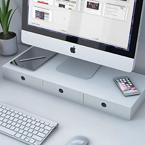 -. Title : Flat Panel Monitor Riser Stand , Space Saver Workstation , Multipurpose Desk Shelf Organizer with 3 Drawers