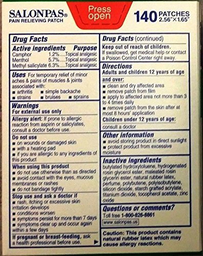 -. Title : SALONPAS 140 ct Pain Relieving Patches external Arthritis Back Relief Salon Pas