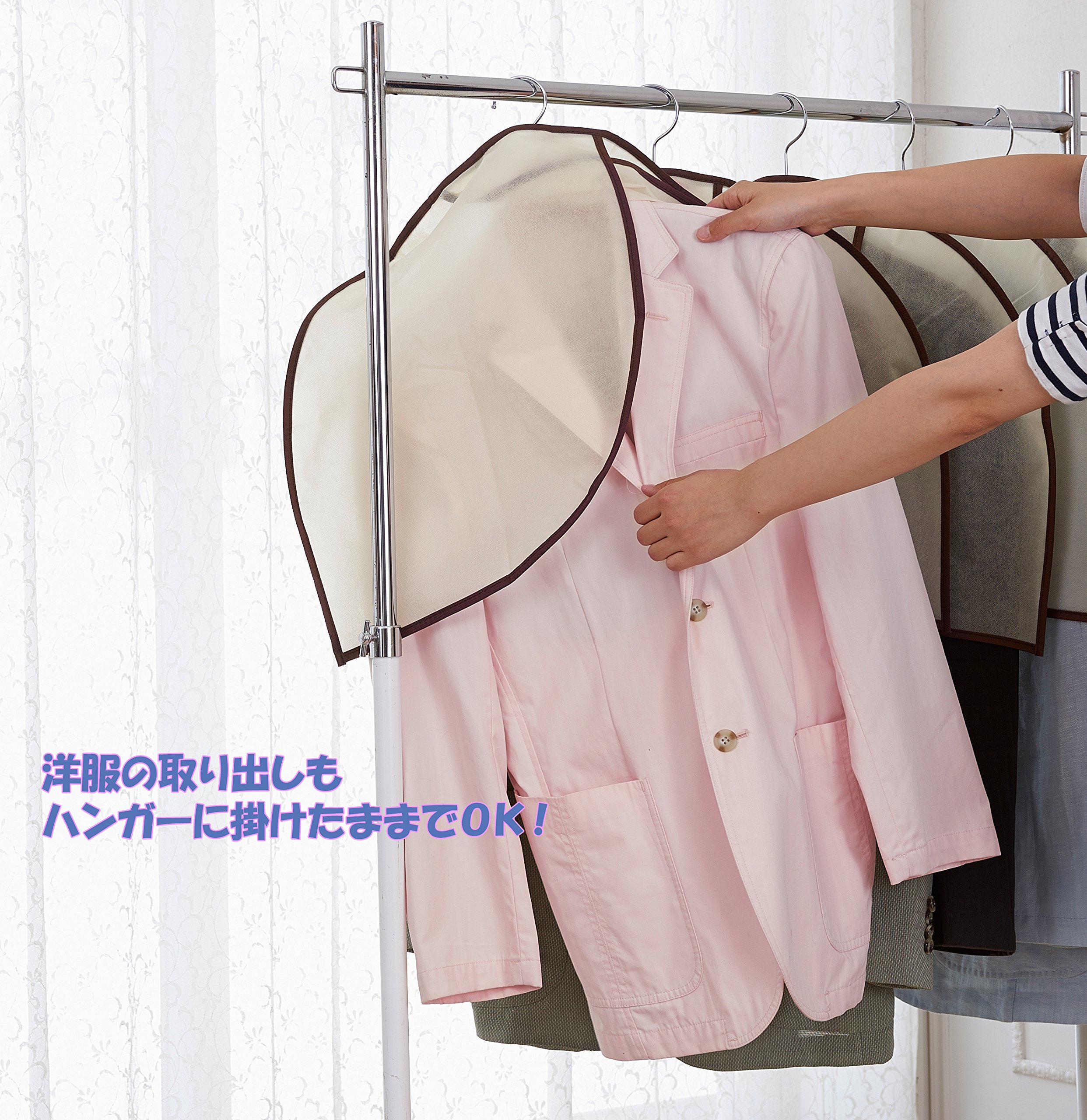 You can take out clothes without removing hangers with front type.