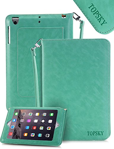 TOPSKY(TM) iPad Mini Case,iPad Mini 2 Case,iPad Mini 3 Case,Premium PU Leather Case Smart Auto Wake/Sleep Cover with Velcro Hand Strap,Card Slots for iPad Mini 1/2/3,With Stand Feature,Black