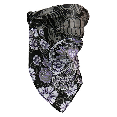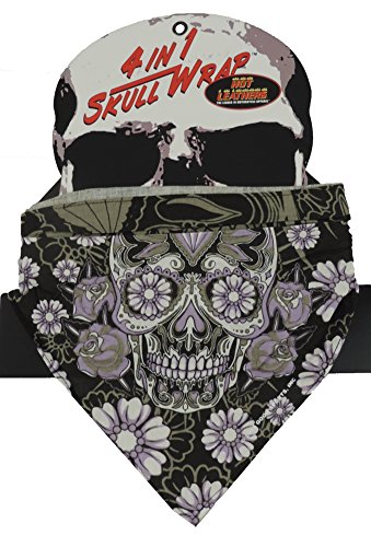 -. Feature : Purple Sugar Skull Bandana / 100% Cotton w/ Spandex Elastic In Back / 4-in-1 Versatility / Sized To Fit Most Adutls / Can Be Worn as a Skullcap, Headband or Facemask