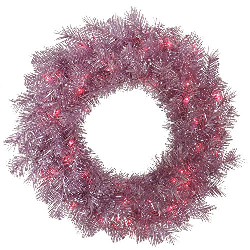 Vickerman Orchid Pink Tinsel Artificial Wreath with 100 Pink Mini-Lights, 36", Pink