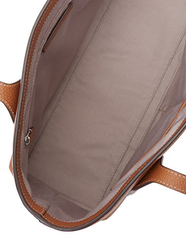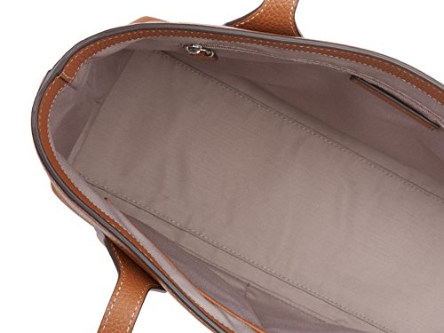 Product DescriptionLeather Dual top carry handles Interior zip pocket Two interior flat pockets Designer logo at front Measurements : Body length 12", height 10", width 5", drop handle 7¼"0