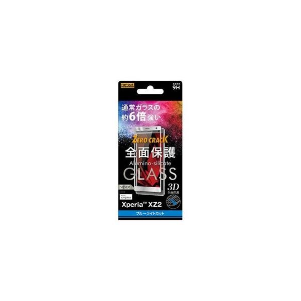 Xperia XZ2 (SO-03K SOV37) 用 ガラスフィルム 3D 9H 全面保護 ブルーライトカット シルバー
