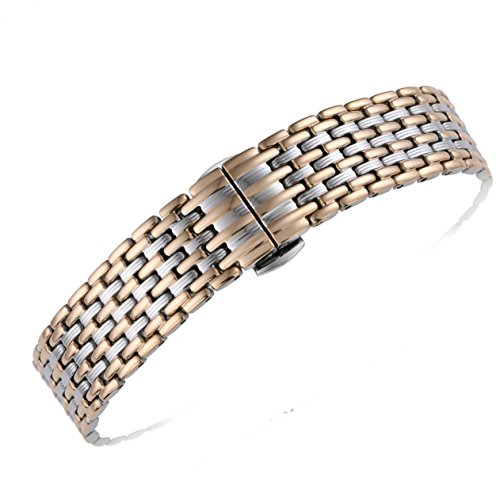 -. Title : 18mm Women's Luxury Unique Elegant Two Tone Silver/Rose Gold Watch Bands Replacements Solid 316L Stainless Steel Pleated Pattern