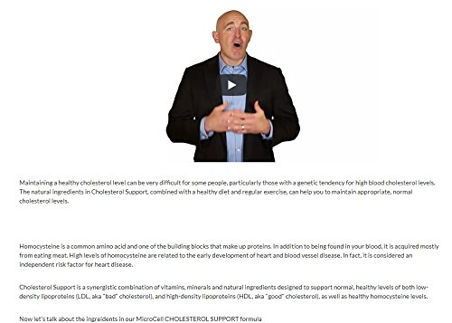 Studio : MicroCell Nutritionals Publisher : MicroCell Nutritionals Binding : Health and Beauty Product Description Maintaining a healthy cholesterol level can be very difficult for some people, particularly those with a genetic tendency for high blood cholesterol levels. The natural ingredients in Cholesterol Support, combined with a healthy diet and regular exercise, can help you to maintain appropriate, normal cholesterol levels. Homocysteine is a common amino acid and one of the building blocks that make up proteins. In addition to being found in your blood, it is acquired mostly from eating meat. High levels of homocysteine are related to the early development of heart and blood vessel disease. In fact, it is considered an independent risk factor for heart disease. Cholesterol Support is a synergistic combination of vitamins, minerals and natural ingredients designed to support normal, healthy levels of both low-density lipoproteins (LDL, aka "bad" cholesterol), and high-density lipoproteins (HDL, aka "good" cholesterol), as well as healthy homocysteine levels. 0