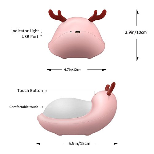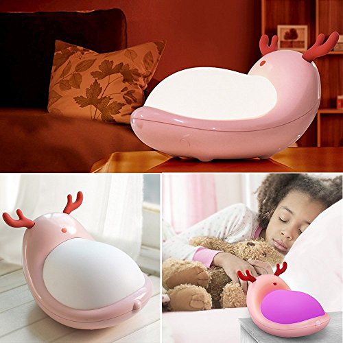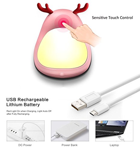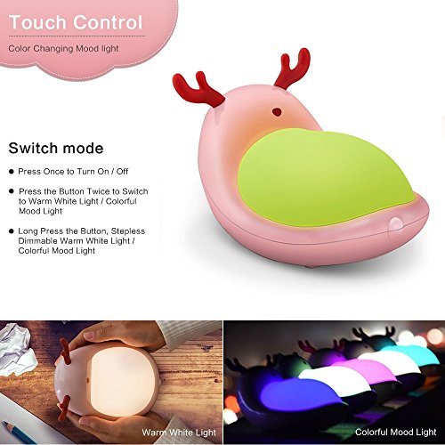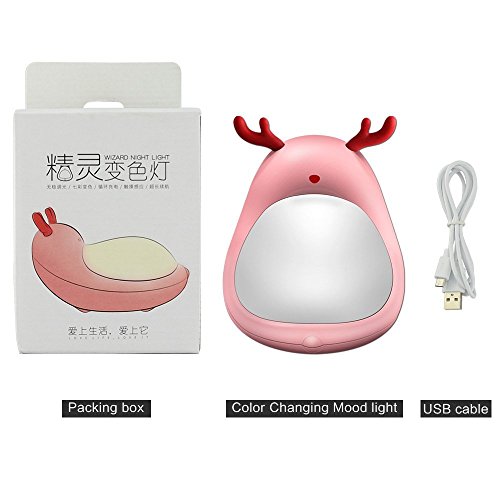 Color You Colorful Touch Night Light LED Portable Bedside Lamp with Dimmable Warm White Light and 7 Color Mood Light, USB Rechargeable Cute Elf Reindeer Design for Kids Girls Ladies
