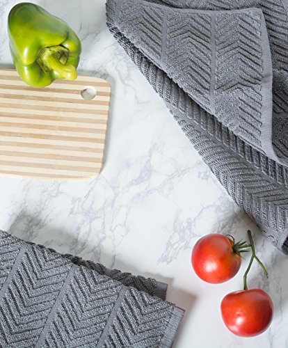 DII 100% Cotton Ultra-Absorbent Cleaning Drying Luxury Kitchen Chevron Bar Mop Dish Towels for Everyday Home Basic 16 x 19" Set of 4- Gray
