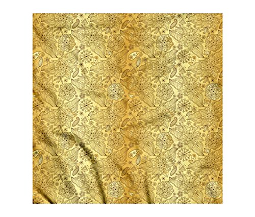 (Ambesonne)/Accessories/Cold Weather Accessories/DIRECT FROM USA/Gold Mandala Bandana by Ambesonne, Flourish Pattern with Paisley Botanical Garden Theme Curvy P...