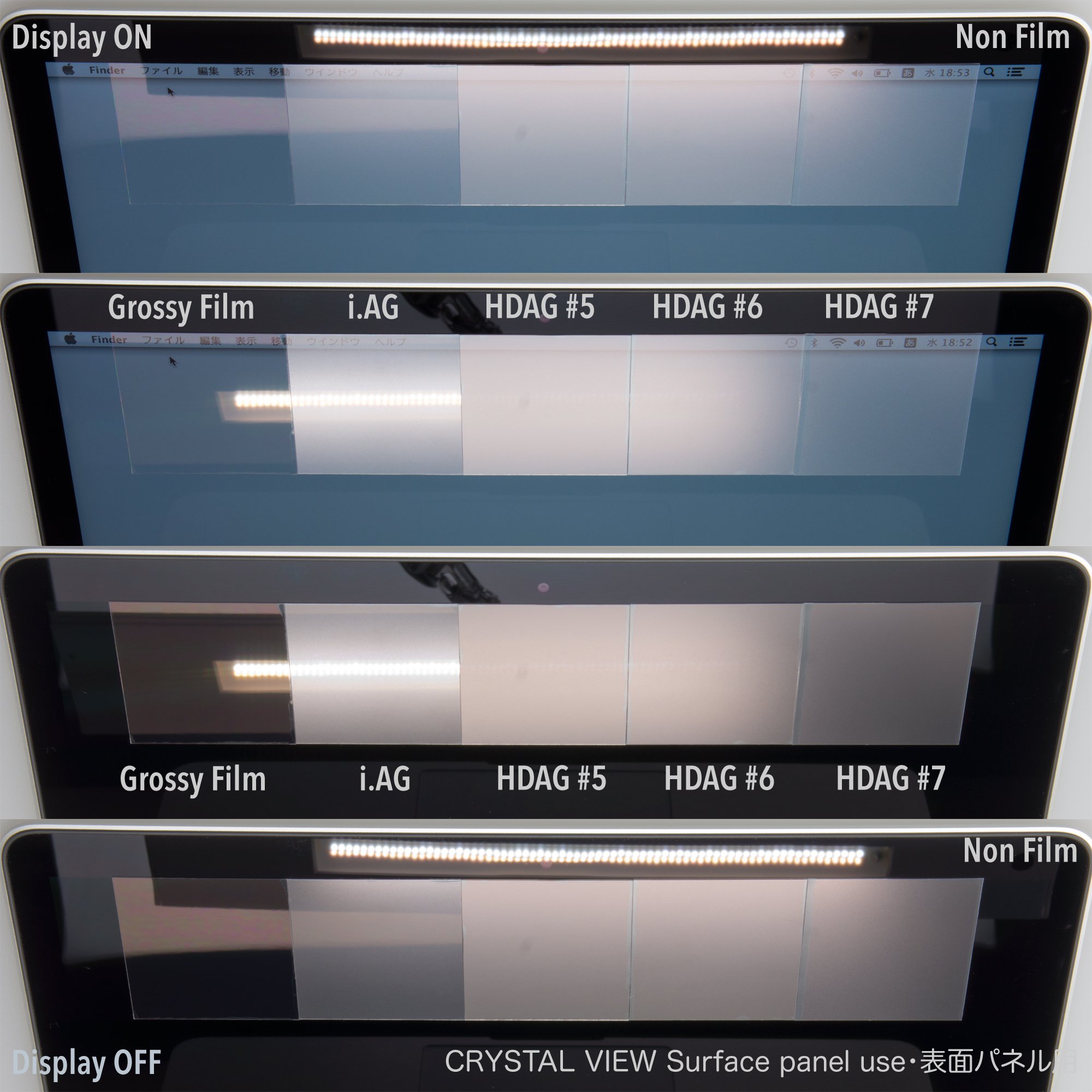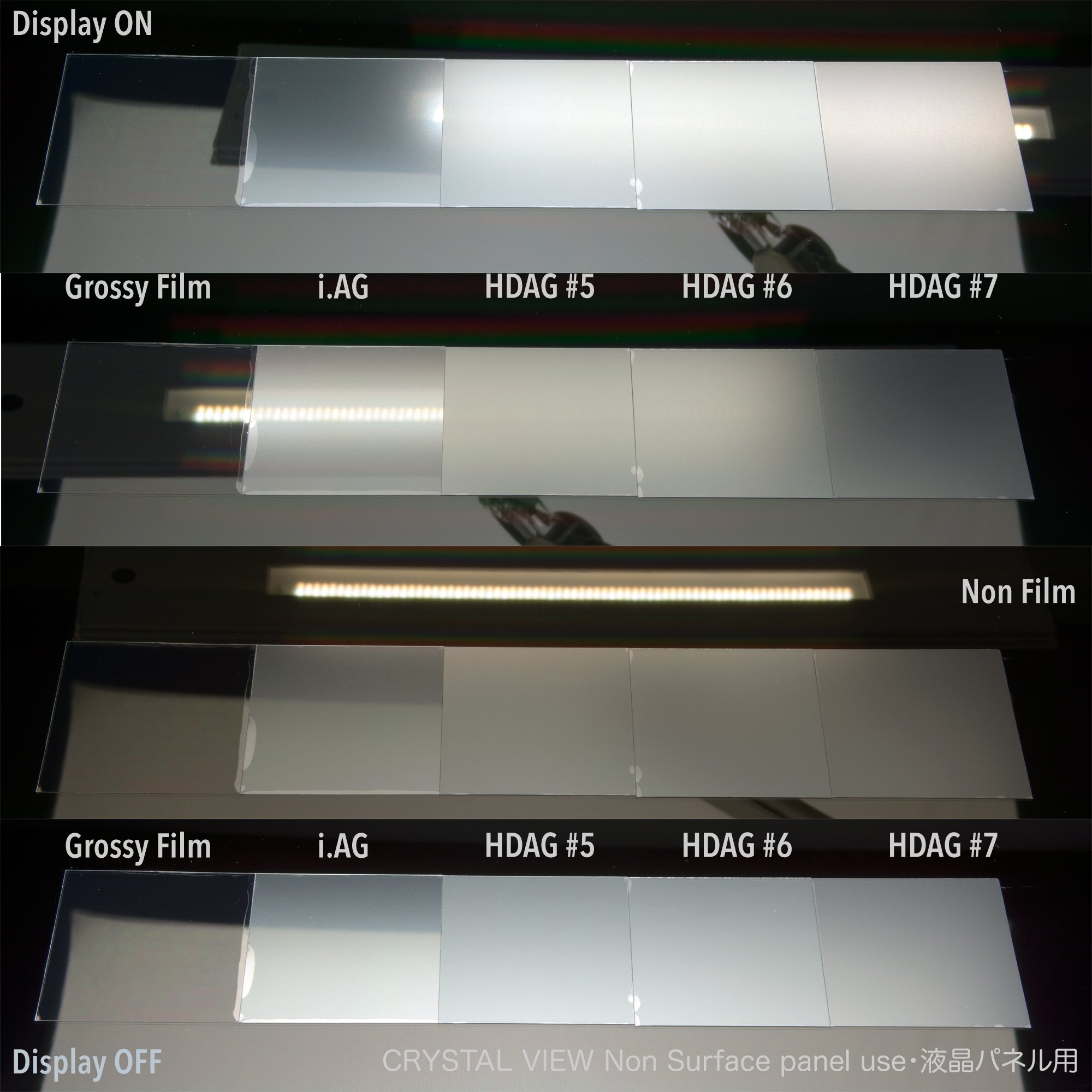 · HDAG · Anti Glare (High-definition Anti-Glare) · Matte, smooth, frosted, functional fullerene film.