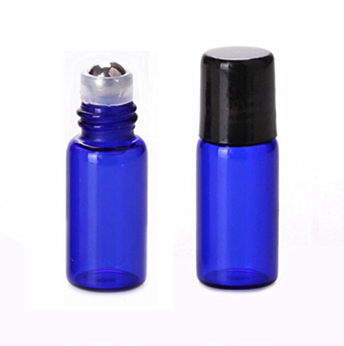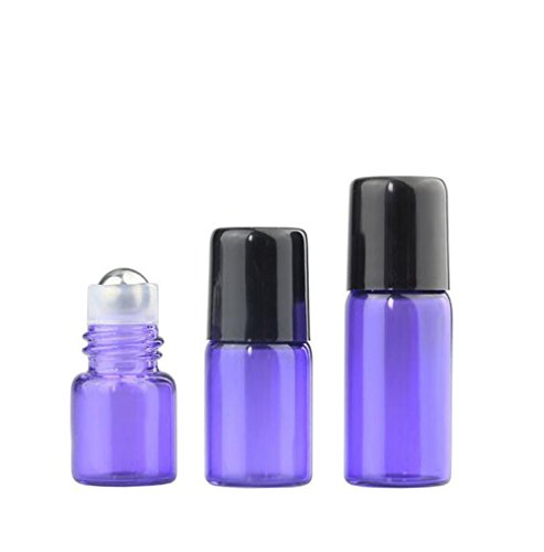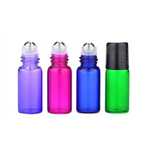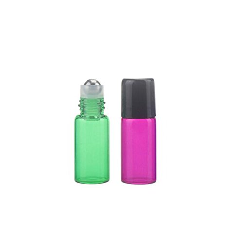 Colorful 20 Pcs Set Glass Essential Oil Roll On Bottles Perfume Sample Roller Bottles Containers Empty DIY Small Cosmetic Metal Rollerball Bottles With Black...
