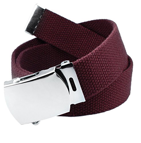 Build A Belt School Uniform classic slider military style buckles with canvas web belts are available in a variety of colors and sizes for kids of all ages. This is a classic silver slider 1.25" military buckle that is easy for kids to us. All buckles and canvas belts are 1.25 inches wide, and the web belts fit through most belt loop sizes. Belt webbing is made of a high quality acrylic that is color fast and does not fray.
