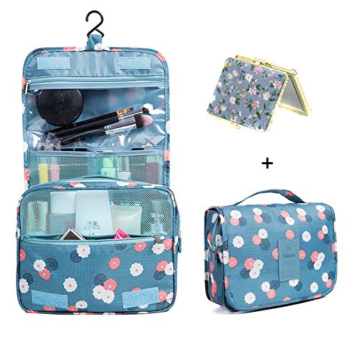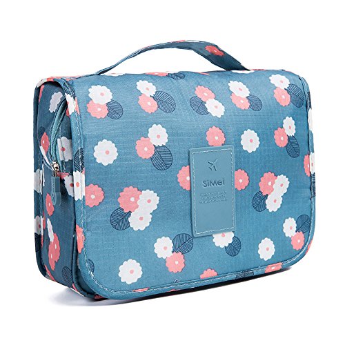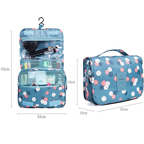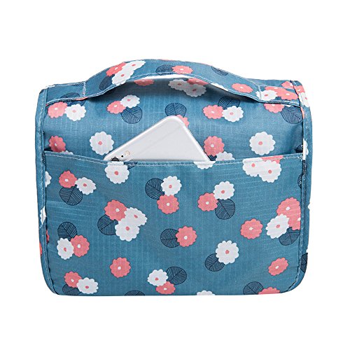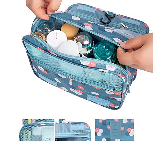 Hanging Cosmetic Bag Makeup Bag Travel Toiletry Bags, Large Capacity Travel Case make up Brushes Pouch Toiletry Kit Organizer Blue Floral Bag