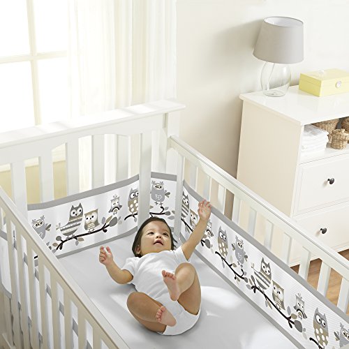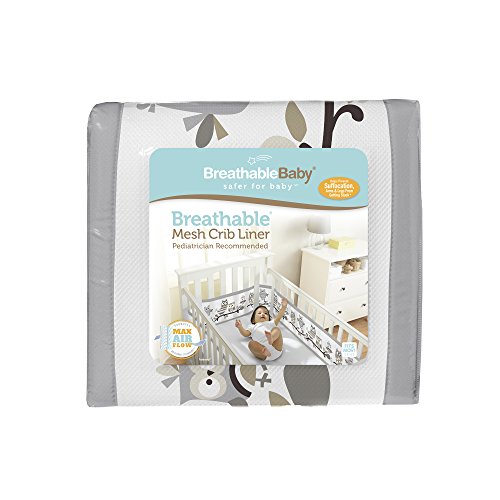 BreathableBaby Classic Owl Fun Mesh Crib Liner, Gray