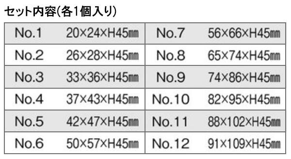 18-8ステンレスを使用した、サイズの違う12個のパテ抜を缶に入れたセットです。