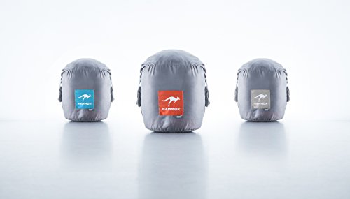 PORTABLE & LIGHTWEIGHT: Weighing in at just 23oz, the Roo Camping Hammock compresses in it’s stuff sack to only 5.5"L x 6.5"H x 4.5”W. This Camping Hammock is an ultra-portable companion for backcountry camping, or backyard tailgating.
