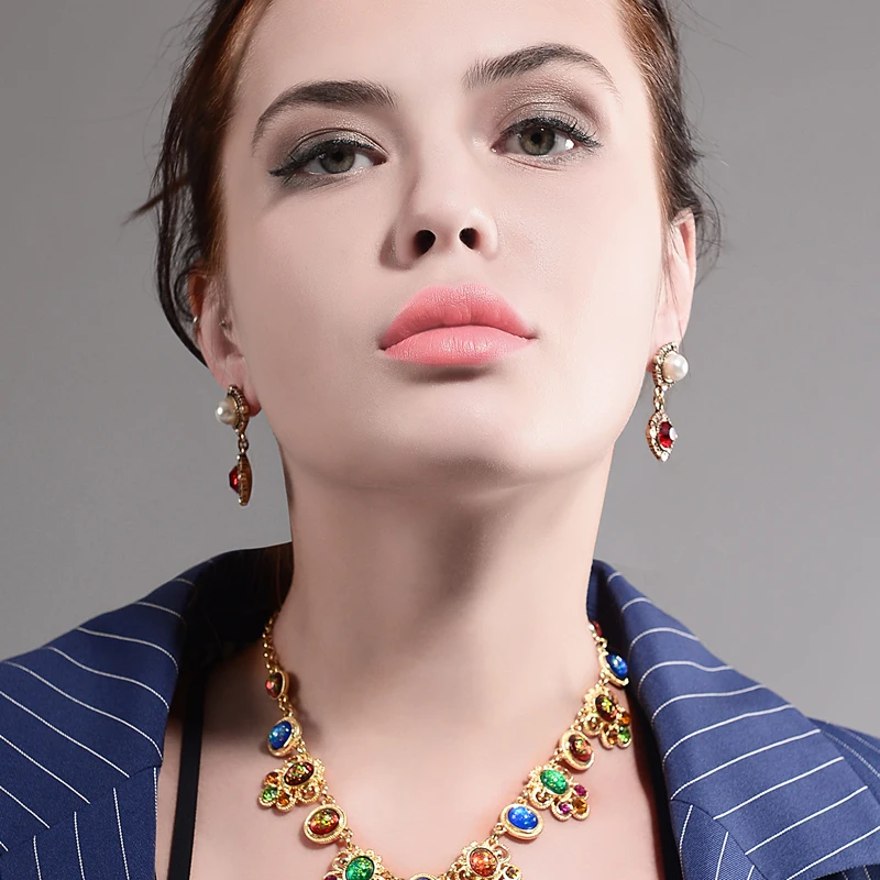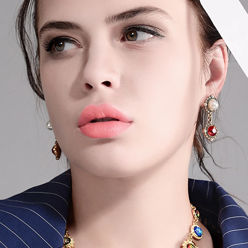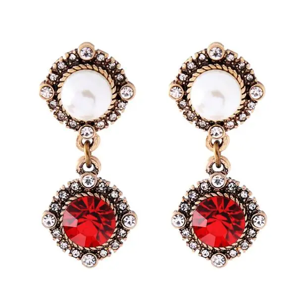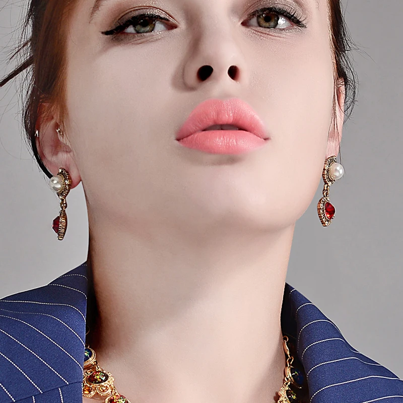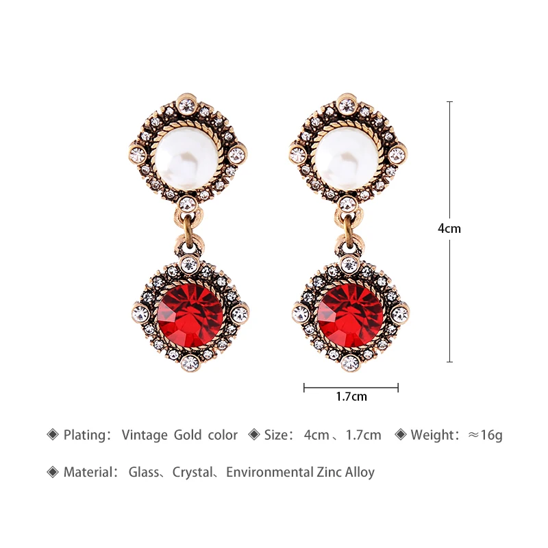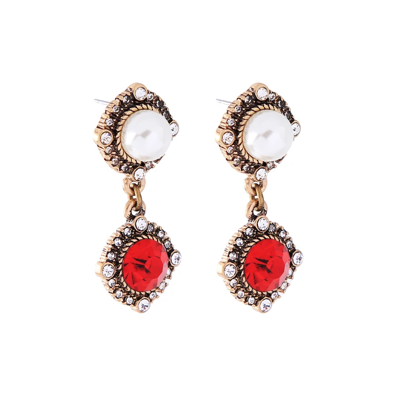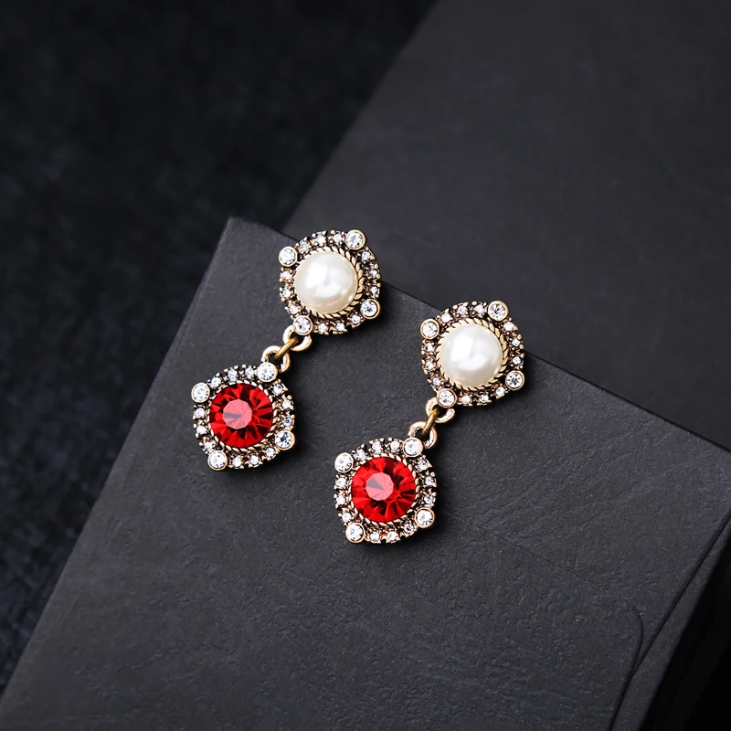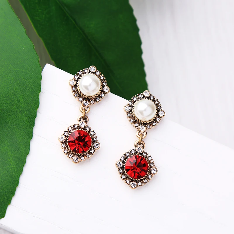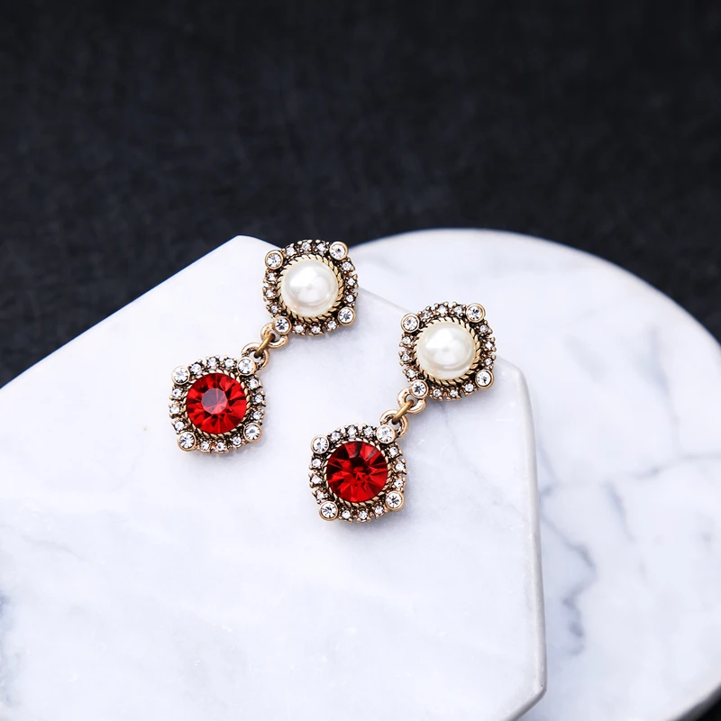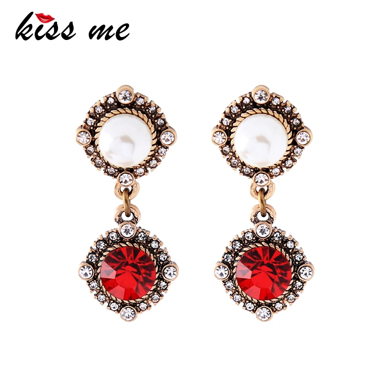Production name ::KISS ME Red Crystal Imitation Pearl Dangle Earrings 2018