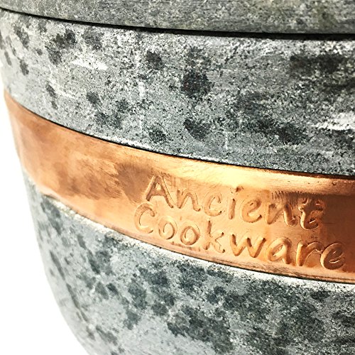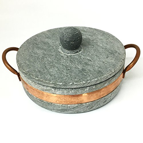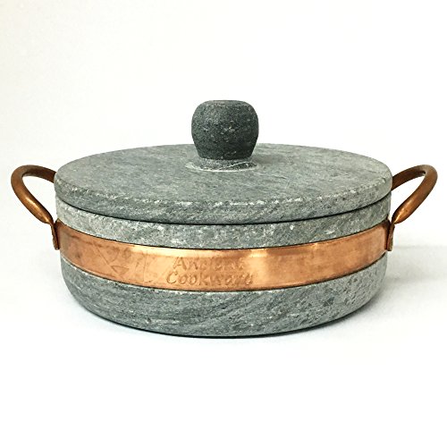Studio : Ancient Cookware Publisher : Ancient Cookware Product Description Soapstone pots are one of the oldest culinary traditions in Brazil where they are known as Panelas de Pedra Sabao. This one is has a capacity of 1.5 qt, and is 11 inches long from handle to handle, 8.75 inches wide, and 5 high including the lid knob.They are widely used in homes and have been for centuries since they started making them in the Ouro Preto region of Minas Gerais. In fact, many restaurants in Brazil, especially in the State of Minas Gerais use them for their buffets. Not to be confused with stoneware, which is a kind of clay fired at high temperature, these are actually handcrafted from a single block of natural, non-toxic soap stone which allows them to withstand temperatures up to 1000°C and its thick and dense walls lets them retain heat twice as long as conventional metal cookware. The beautiful stone makes a stunning and exotic presentation to serve family style right from the pot, and serving from mother earth herself. 0