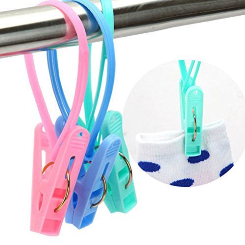 24 Pcs Plastic Clothes Drying Peg Clip Pins Rope Hanging Clothesline Windproof Hanger