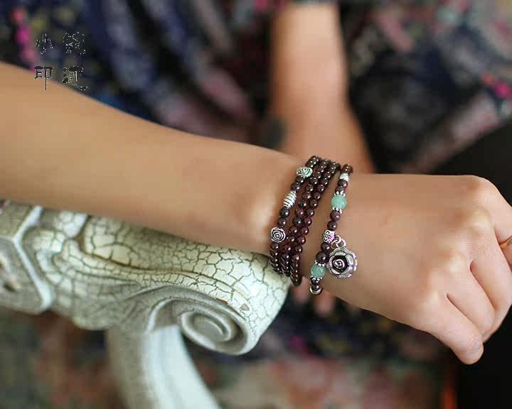 Specifications: Bracelet fold about 35cm (excluding pendant), the largest bead diameter of about 6mm, the smallest bead diameter of about 3mm, flowers directly about 14mm, can be 3-4 laps around the hand
