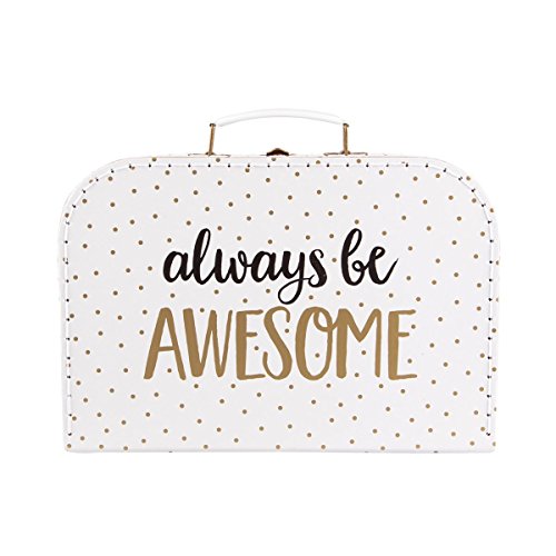 - Outside design features a white background with gold dots and 3 different positive quotes (always be AWESOME, follow your DREAMS, and choose HAPPY), while the inside features a black background with white polka dots.