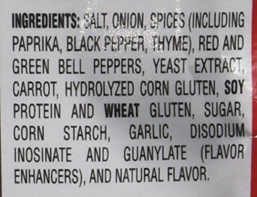 -. Feature : Cooking bag inside / Salt, Onion, Red and Green Bell Peppers, / Disodium Guanylate (Flavor Enhancers), and Natural Flavor / Spices (Including Black Pepper and Thyme), Yeast Extract, Carrots, Hydrolyzed Corn Gluten, Soy Protein, and Wheat Gluten, Sugar, Corn Starch, PaP.R.Ika, Garlic, Parsley, Disodium Inosinate