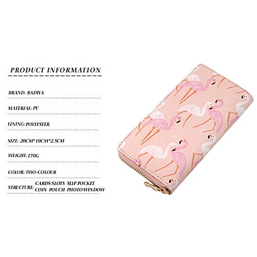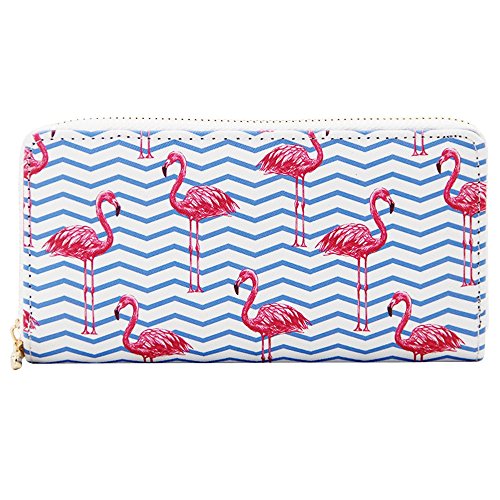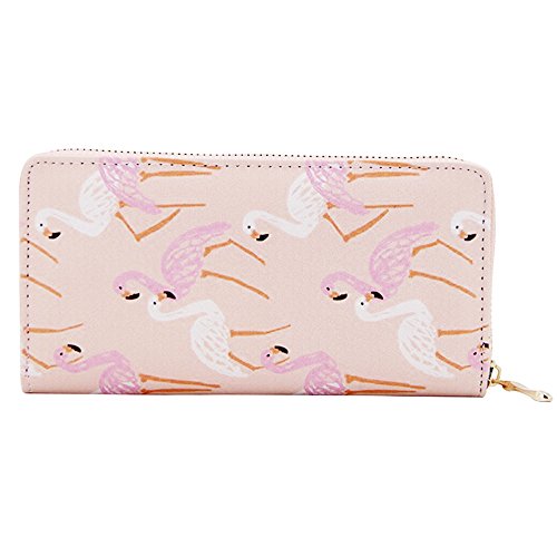 -. Title : Kukoo Women Leather Long Zipper Wallet Flamingo P.R.Int Clutch Purse Credit Card Holder