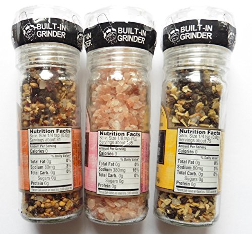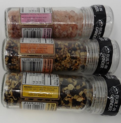 -. Title : Spices with Built-in Grinder Trader Joes Lemon Pepper, Everyday Seasoning, and Himalayan Pink Salt- Bundle of 3 with one of Each Kitchen Necessities