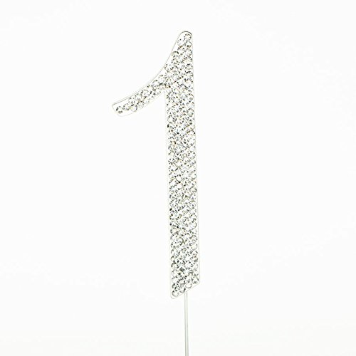 Number 1 Bejeweled Rhinestone Cake Topper, 4.5" Tall Numeral One in Silver, Silver