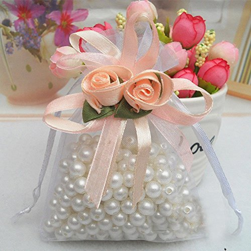 Homanda Pack of 50pcs White 5"x8" Organza Drawstring Pouches Jewelry Party Wedding Favor Gift Bags