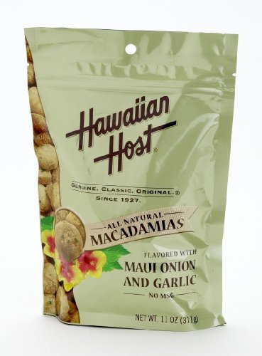 -. Title : Hawaiian Host MACADAMIA NUTS - Maui Onion and Garlic Flavored, LARGE 11 oz (Resealable Bag)