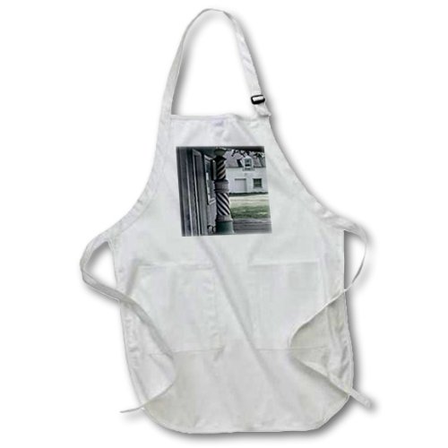 3dRose apr_173607_1 Photo of an Old Barber Shop Poll-Full Length White Apron with Pockets, 22 by 30-Inch