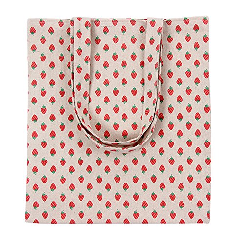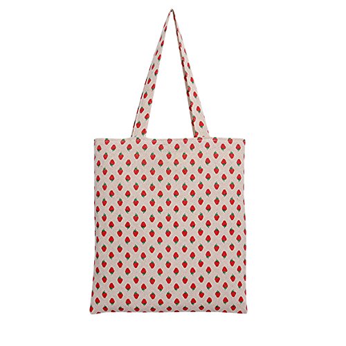 Chezi Women's Strawberry Print Cotton Reusable Foldable Canvas Tote Shopping Bag
