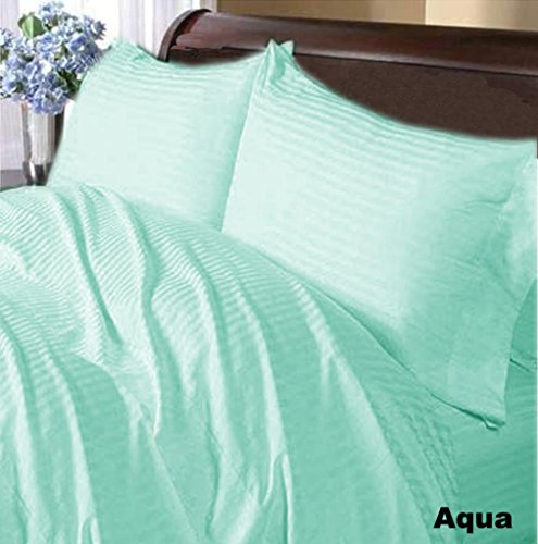 -. Title : Italian 1000TC 3pc Fitted Sheet 26" Deep Pocket King Aqua Blue Stripe 100% Egyptian Cotton -N