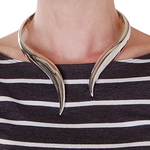 ELEGANT & STYLISH DESIGN - This modern hinged collar necklace features high-shine curves and a bold asymmetrical design.