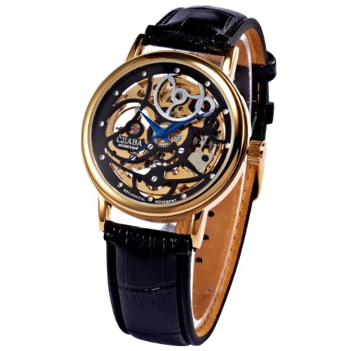 -. Title : [エーエムピーエム24]AMPM24 クラシック ゴールド ケース スケルトン メンズ 手巻き 機械式 ブラック レザー 腕時計 PMW197