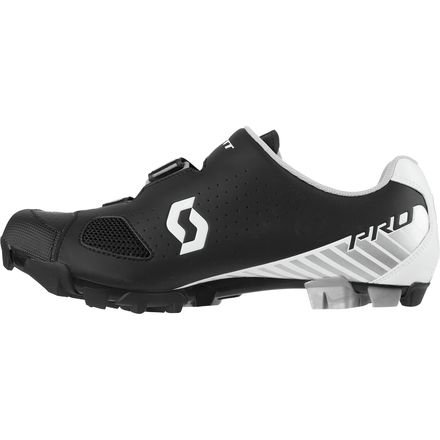 Studio : Scott Publisher : Scott Binding : Misc. Product Description Whether you're testing the trail waters for the first time, replacing a well-worn pair of kicks after a long season of racing, or looking to throw down in your local weeknight XC series, trust the Scott Men's MTB Pro Shoe to deliver power transfer, durability, and comfort for a price that won't blow your wheel upgrade budget for the summer. Around the top of your foot, panels of pliable microfiber and 3D nylon airmesh conform to the lumps and bumps you've picked up over the years, while encouraging airflow to prevent clammy toes. Before you ride, making fit adjustments at the trailhead is easy using the ratcheting buckle and dual hook-and-loop straps. Each covers a different area of your foot, so you don't have feel like you're wearing a vice around your toes just to get a secure fit along your instep for a climb. Underfoot, Scott adds a useful lugged outsole to keep you stepping confidently when the singletrack deteriorates and you've got no choice but to hike-a-bike. It sits over a fiberglass-reinforced nylon sole, which lends trail-appropriate stiffness with some flex to prevent aching feet after high mileage days. 0